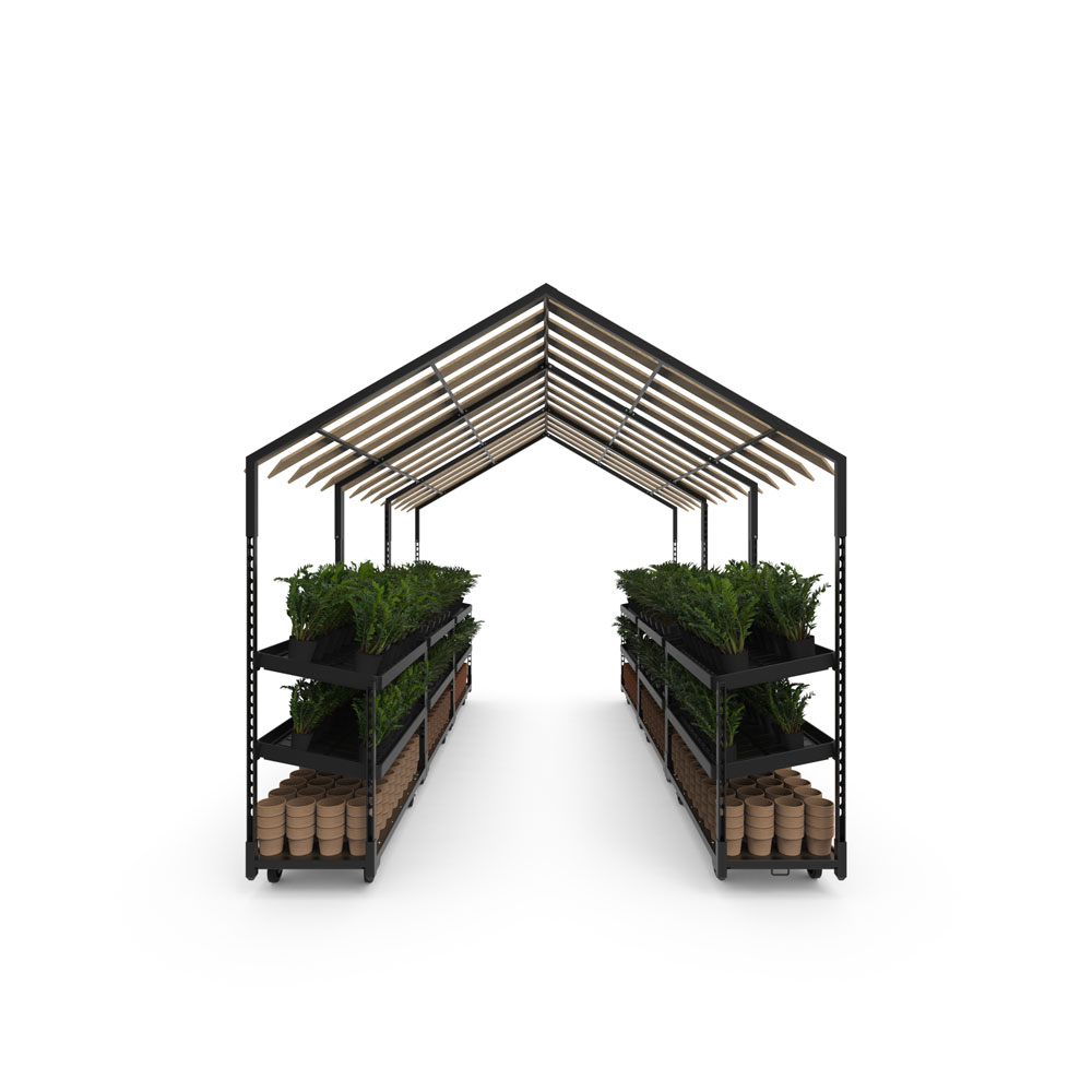 For a presentation that sells and inspires. Ample space for (hanging) plants & pots. Modular construction makes the unit easy to adapt and/or expand.