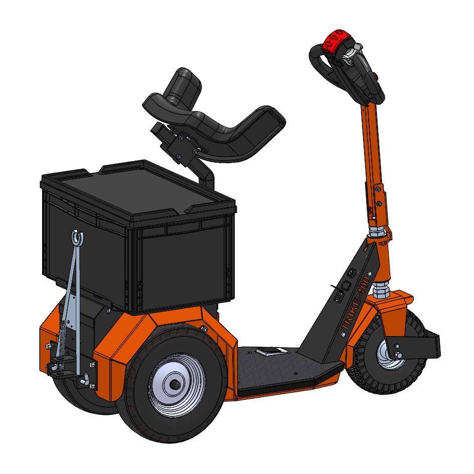 The electric tug Trike-400 allows you to transport up to 400 kg of cargo with ease in different environments. Additional upgrades can be purchased.