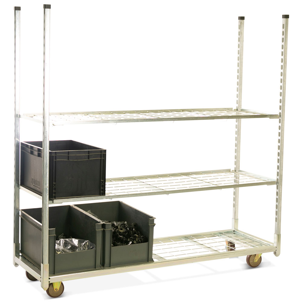 Our customised trolleys are produced from high-quality galvanised steel. The trolleys and shelves are fitted with a steel wire bottom and board, so that both load capacity and durability are significantly better than the wooden variant.